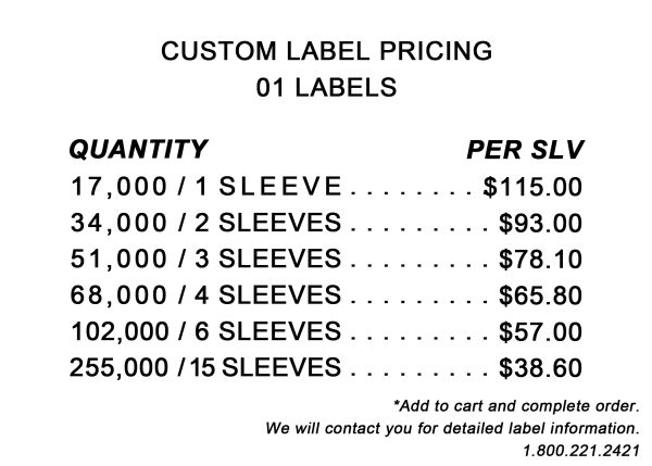 1,063 labels per roll; 17,000 labels per sleeve